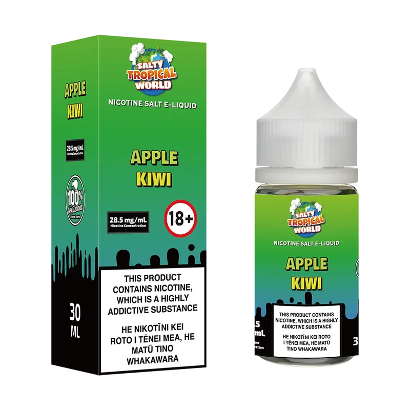 Previously known as Salty Tropical World Green Apple Kiwi Nicotine Salt E-liquid.