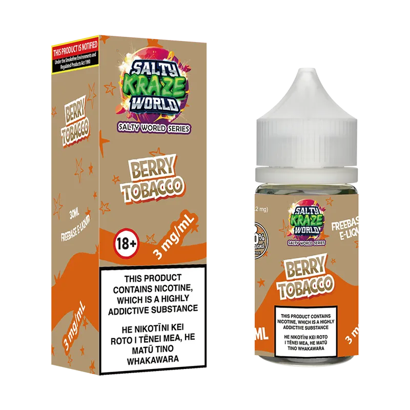 Previously known as Salty Kraze World Blackcurrant Tobacco Freebase E-liquid
