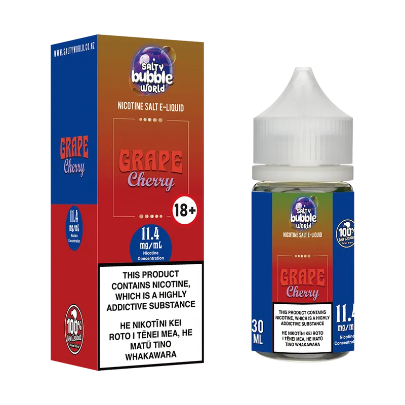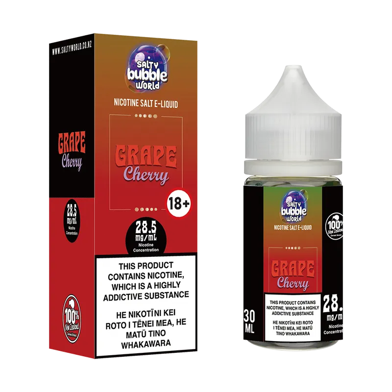 Previously known as Salty Bubble World Redcurrant Grape Cherry Nicotine Salt E-Liquid