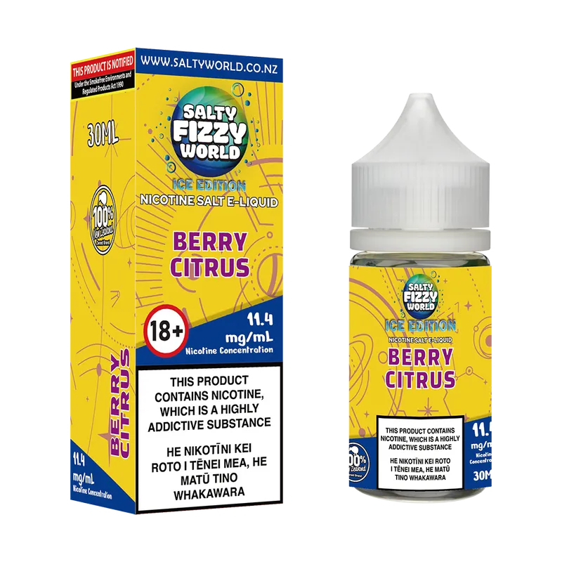 Previously known as Salty Fizzy World Mixed Berries Citrus Ice Nicotine Salt E-liquid