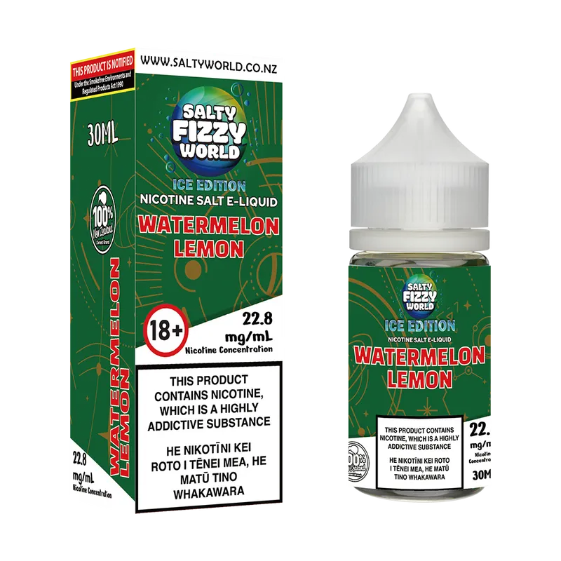 Previously known as Salty Fizzy World Watermelon Melon Iced Lemonade Nicotine Salt E-liquid.