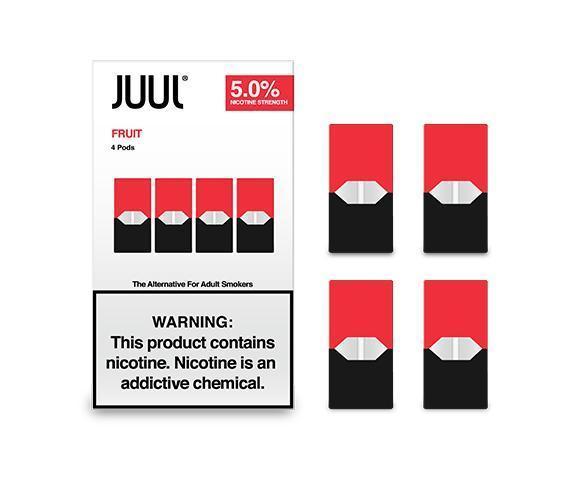 Pack of four Juul Fruit Medley Pods flavor, formerly known as FruutEach JUULpod should deliver around 200 puffs before it needs changingEach JUULpod contains 0.7ml of pre-filled e-liquid5% nicotine by weight (50mg nicotine)..