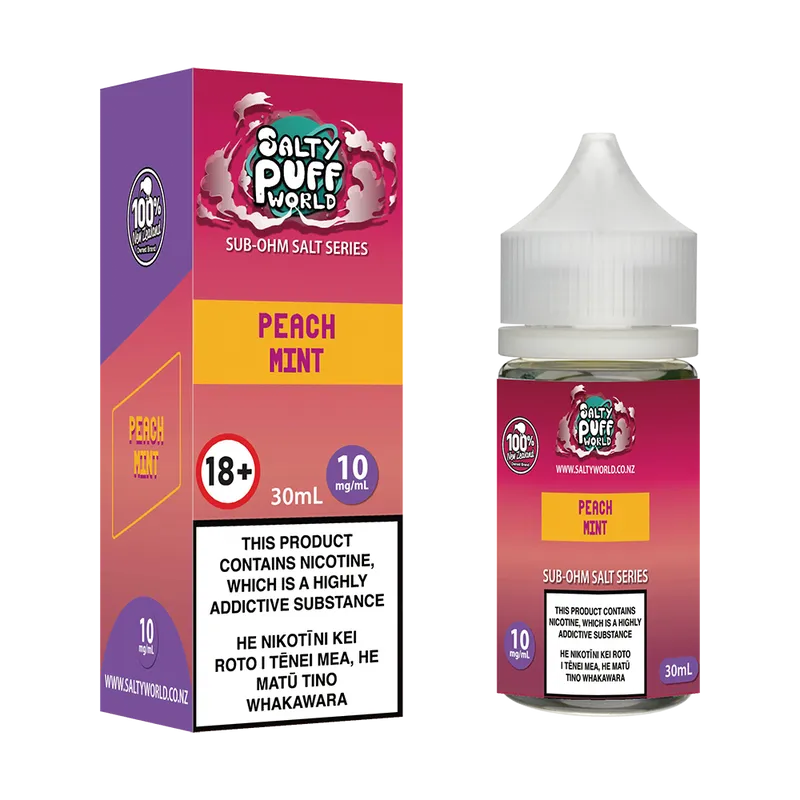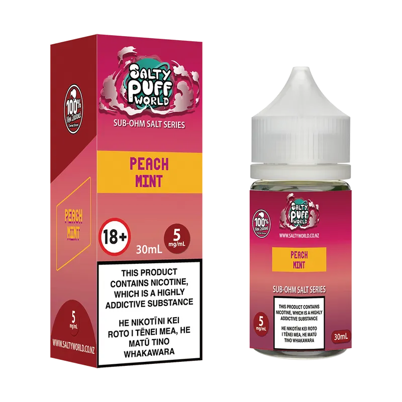 Previously known as Salty Puff World Peach Ice Sub-ohm Nicotine Salt E-liquid.
