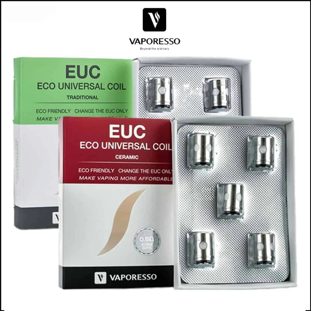 The Vaporesso EUC – Eco Universal Coil is an innovative performance atomizer created with affordability in mind. It is intuitive created, changing the way users typically replacement the atomizer coils. Instead of changing the entire coils, the EUC Replacement Coils only requires the changing of the core instead of the entire metal sleeve. The result is a more cost-effective design, while providing ample performance capability. There are two types of version, a Ceramic type that pays homage to the original cCell structures and a Traditional performance coil, with Kanthal, Nickel, or Stainless Steel heating elements.